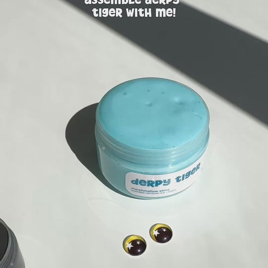 Assemble your very own Derpy Tiger slime! (Watch our assemnbly video!) This pillowy marshmallow slime is perfect for beginners, so soft to the touch & non-tacky too. Scented rainbow ice cream for allll the joy!