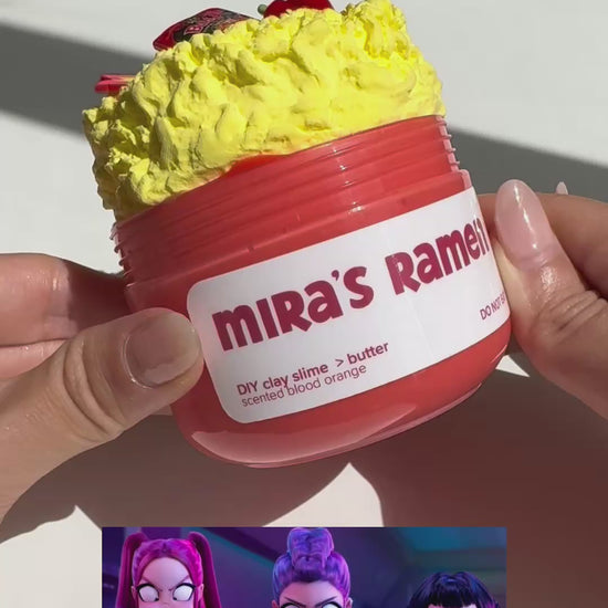 It’s Mira’s extra spicy ramen but in a slime! Assemble this DIY clay slime & smush this large clay topper into the base thick & glossy slime. Keep kneading at it until it forms a dense butter slime!