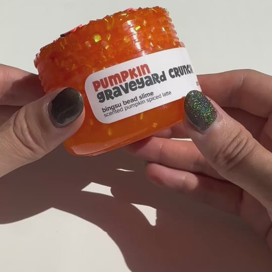 It's impossible for Halloween to be without pumpkins!! Scented pumpkin spiced latte, this neon orange crunchy slime is a must-have for this spooky collection. Pop, crunch and stretch your way into ASMR heaven with this fun little number!